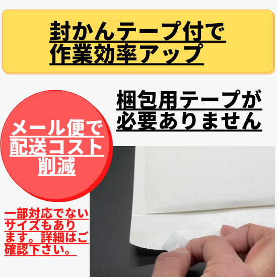 封緘時も封緘テープ付なので、別にテープも必要なく簡単に梱包でき出荷の適したパッケージです。