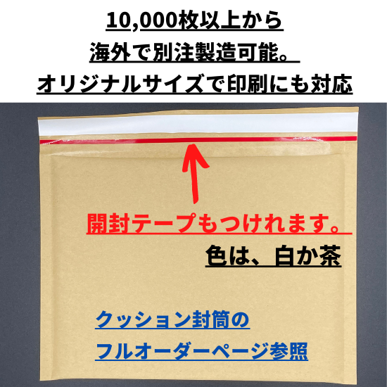 弊社ではクッション封筒は10,000枚以上から、オリジナルサイズの別注制作が
