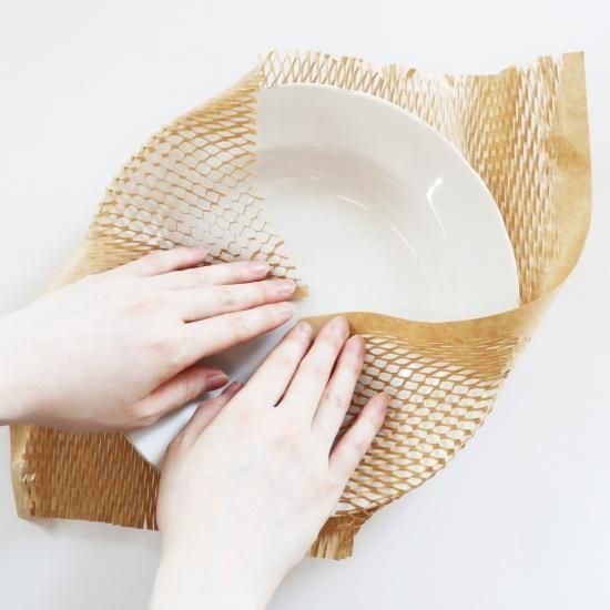 メッシュ状の紙緩衝材クッションペーパー。ワインや陶器などに使用できます。